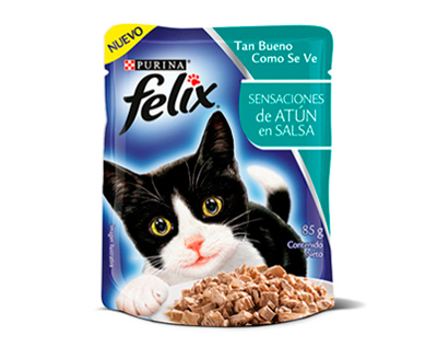 Jugosos y tiernos trocitos de atún servidos en una deliciosa salsa sin igual para deleitar el placer de los gatos.
