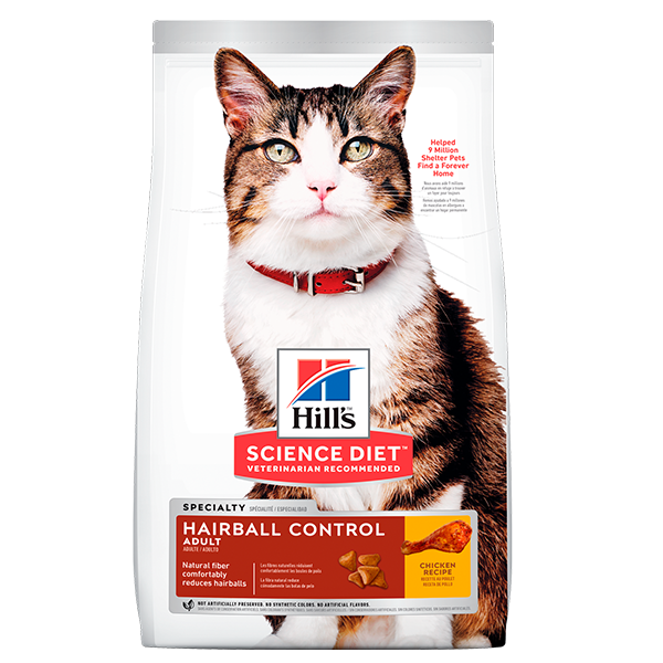 Alimento balanceado con precisión para ayudar a evitar la formación de bolas de pelo en gatos adultos.