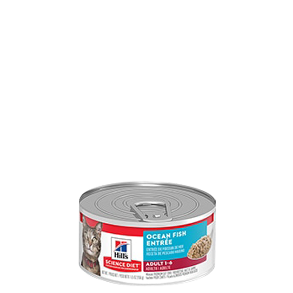 Alimento en lata para gatos adultos, receta de comida de mar.