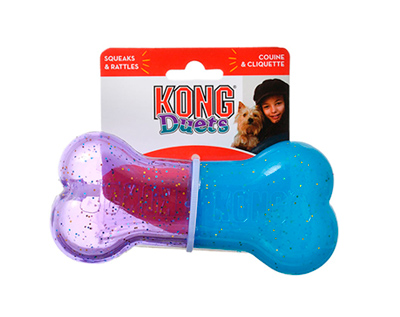 Con los nuevos Kong Duets tu mejor amigo estará muy contento porque tendrá una agradable sensación al morder a la vez que podrás llenarlo de pasabocas para una larga entretención.