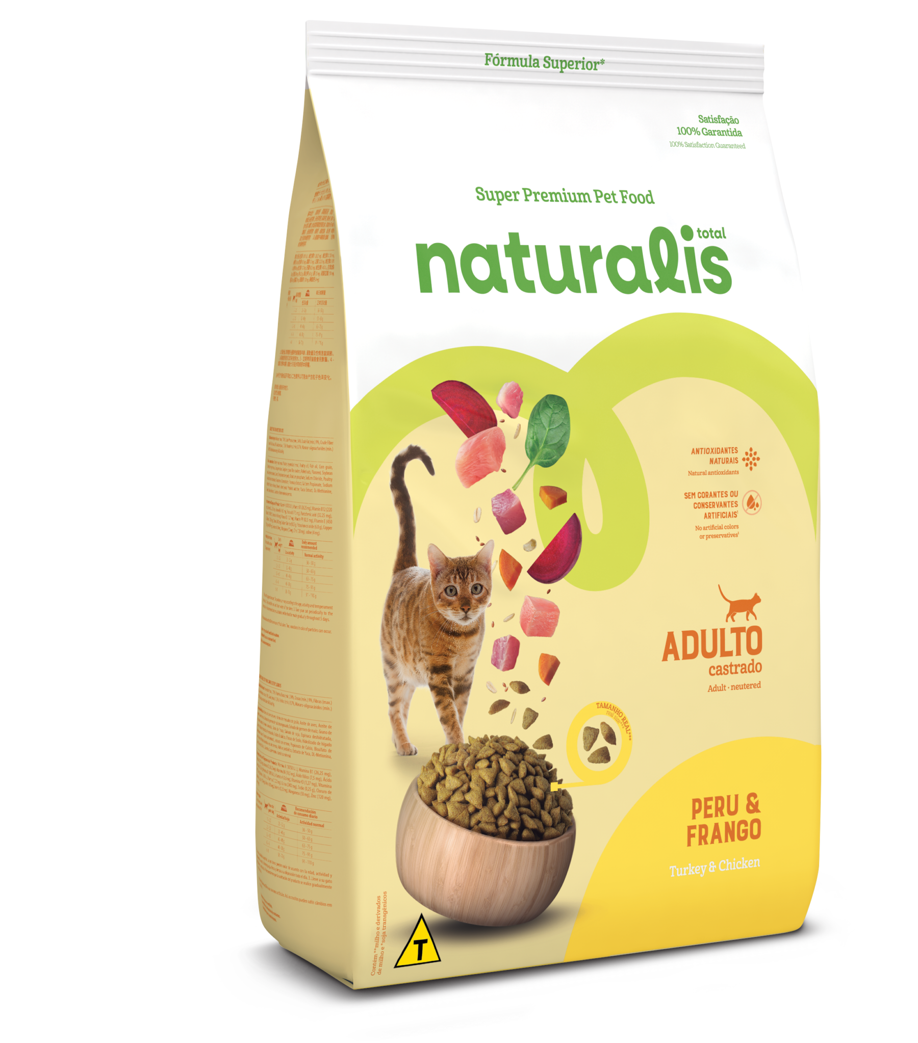 Alimento 100% natural para gatos castrados. Sin colorantes ni conservantes artificiales.